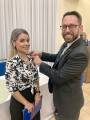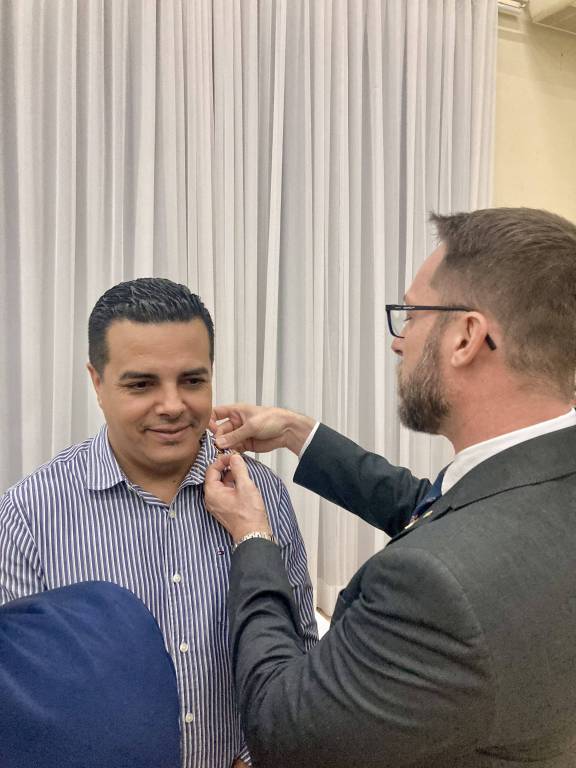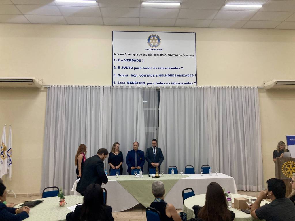 Durante a cerimônia, os novos associados receberam o distintivo do Rotary Internacional das mãos do governador assistente da área 6, companheiro Alessandro. Além disso, o presidente Anderson fez a entrega do distintivo da atual gestão, que tem como lema “A Magia do Rotary”. Este momento simbólico não apenas celebrou a entrada dos novos associados, mas também reforçou os laços de amizade e compromisso que unem os rotarianos em sua missão de servir. A entrega dos distintivos representa a união e a responsabilidade compartilhada entre os associados, que juntos buscam fazer a diferença na comunidade.